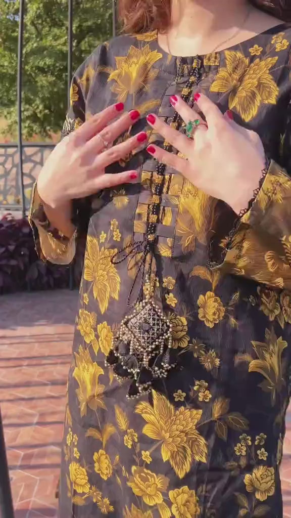 3-Piece Embroidered Cotton Maxi Set with Printed Dupatta Fabric: High-quality cotton with printed designStyle: Maxi dress with detailed embroiderySet Includes:...