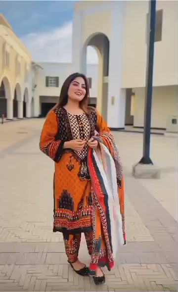 3-Piece Embroidered Cotton Maxi Set with Printed Dupatta Fabric: High-quality cotton with printed designStyle: Maxi dress with detailed embroiderySet Includes:...